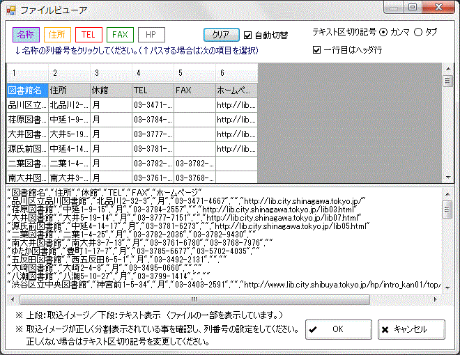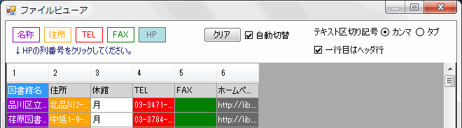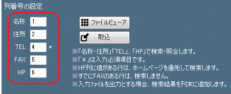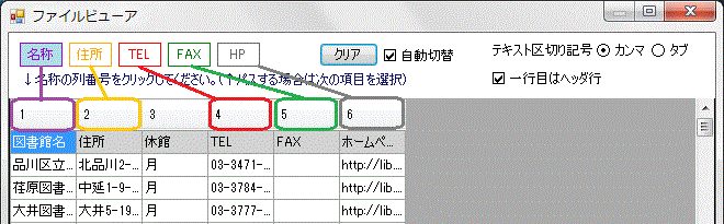 ファイルビューアで選択した列番号が赤枠にセットされます。