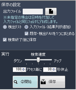 を押下すると、検索が開始されます。検索終了後は、指定のファイル名でファイル出力が行われます。