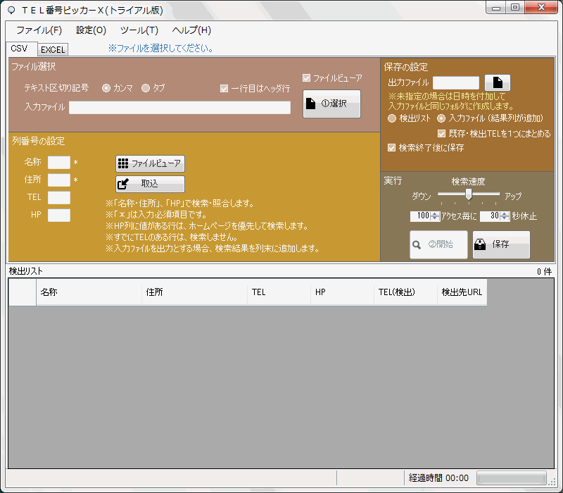 ボタンを押下して、ソフト(検出リスト)に検索条件を取り込みます。※検出リストへは、検索に適したデータに一部整形されて取り込まれます。
