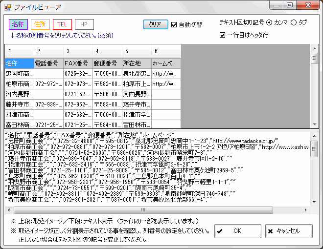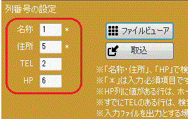 ソフトで必要な項目の列番号を設定します。