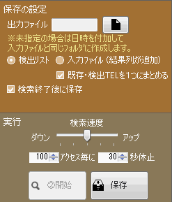 検索速度の調整や検索中に休止を入れることができます。