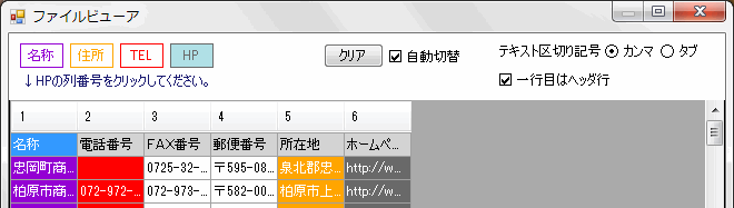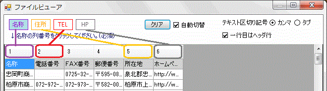 ファイルビューアで選択した列番号が赤枠にセットされます。