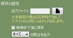 を押下すると、検索が開始されます。検索終了後は、指定のファイル名でファイル出力が行われます。