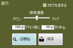 件数が多く長時間のアクセスが続く場合は、検索エンジンによるアクセス制限を受けやすくなります。速度を落としたり休止を多く設定して調整してください。