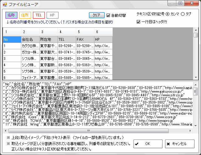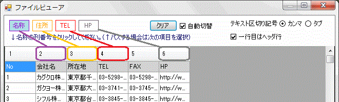 ファイルビューアで選択した列番号がオレンジ枠にセットされます。