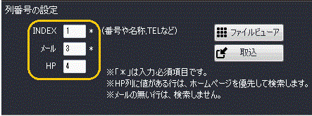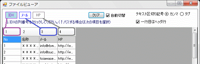 ファイルビューアで選択した列番号がオレンジ枠にセットされます。